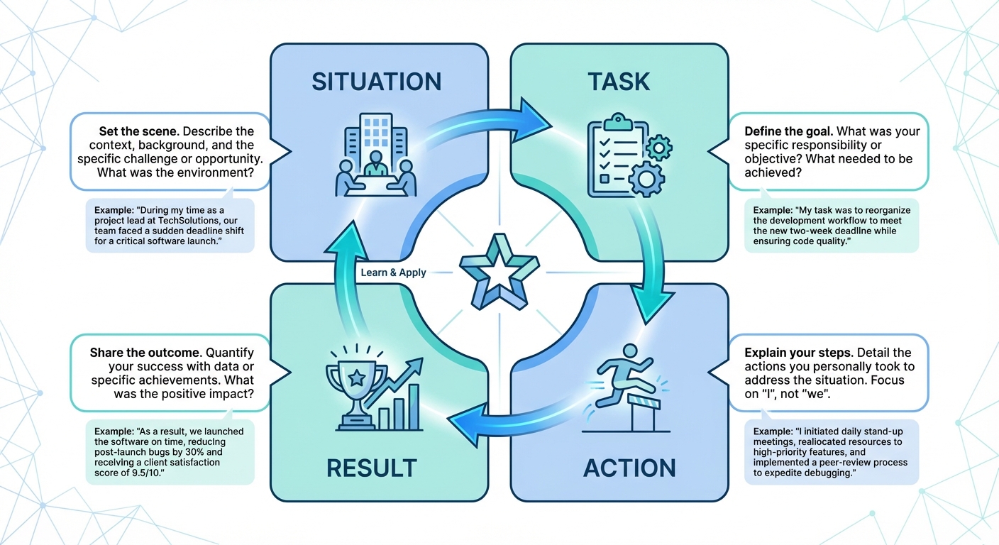 The STAR method is your best friend when answering these questions. It provides a clear and concise framework for your responses.