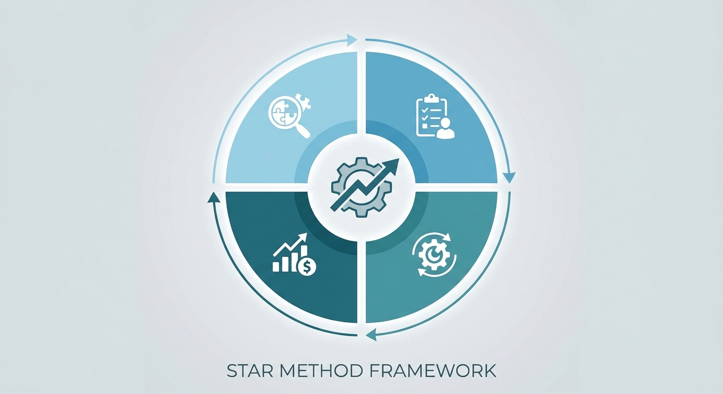 ![A four-part circular chart explaining the STAR method: Situation [context], Task [your responsibility], Action [what you did], Result [the data-driven outcome].](https://fayvrwhdvhotioocpzeq.supabase.co/storage/v1/object/public/blog-assets/infographic-1776319302664.png)